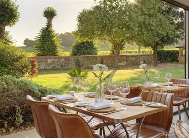 The Vineyard Restaurant is located in the orangery with unrivalled views over the avenues of vines reaching into the distance. The restaurant is now open to the public and residents for dining every evening offering a la carte dining with an emphasis on locally sourced produce.