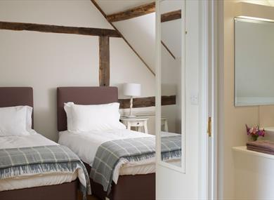 Pear Tree is a very special cottage for two, with a whirlpool bath and large shower. Hayloft is on the first floor, with two double/twin ensuite bedrooms, one with bath and one with shower.