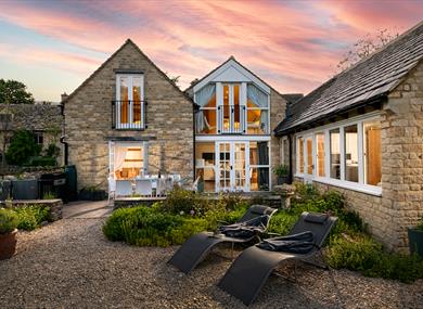 The Chestnuts is an outstanding, traditional, yet chic, Cotswold cottage the main part of which dates back to the 1850s. It has many original features including a curved stone stairway, beamed ceilings and a large inglenook fireplace with original bread oven. The cottage has recently been sympathetically extended and today the property comprises four bedrooms (two of them Masters), three lounges, two luxury bathrooms and a separate spa style shower room and downstairs toilet. All the rooms are interior designed in soothing neutral colours with original art works and artefacts.