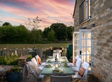 There are numerous places to sit and dine in the garden and outside lights have been placed throughout for your enhanced enjoyment. However, we suggest that you stay out in the garden in the dark; one of the joys of Shilton is its night sky. The relative lack of light pollution in this area can lead to some spectacular starry nights. The trees on the river bank are also home to many birds and you can often hear owls hooting to one another.