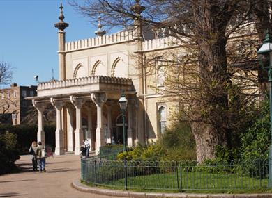 From the Old Steine go up North Street, turn right into Royal Pavilion gardens through the Indian Arch - walk through the gardens - museum entrance is at the north west corner.