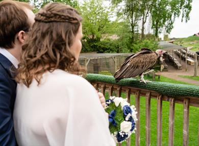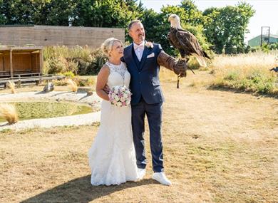 If you're thinking of a unique wedding venue that can offer stunning wildflower meadow and woodland settings for your ceremony and photographs, exciting flying displays to keep your guests entertained, and incredible up-close experiences with beautiful birds of prey, then look no further than the Hawk Conservancy Trust!