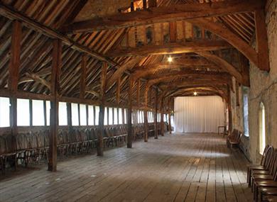 The existing Buildings comprise the Checker Hall (now the Unicorn Theatre), the East and West Checkers, the Long Gallery, the Lower Gallery and the Undercroft. The Checker Hall (originally the granary) dates from the 15th century and has a fine wooden roof which was revealed when the building was restored. It was converted into a small Elizabethan-style theatre in the 1950s. The East and West Checkers date from 1270 and were originally a single large room which provided ample accommodation for the Abbey Treasurer. This room was divided into two in 1340. The Checker chimney is one of the best surviving examples of a medieval chimney. The Undercroft beneath the Checkers is a fine vaulted room which has served various purposes including being a wine cellar. The building now known as the Long Gallery dates from the late 15th century. The original layout of the upper floor was very different from that existing today. It consisted of a series of rooms accessed from a passage along the north side. Although this layout is similar to that of a medieval inn, it is not clear whether this was the original purpose. An imposing fireplace on the south side near the east end and a painting on the plaster above one of the cross beams suggest that if it was a lodging, it may have been reserved for more important visitors to the abbey. Alternatively, it may have been converted into a comfortable dwelling house after the Dissolution.