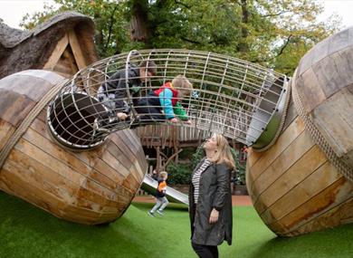Adventure Play is a unique, hand-crafted adventure playground at Windsor Great Park. Hidden within the woodland next to The Savill Garden, you’ll discover a fascinating world of walkways, slides, sculptures and treehouses.
