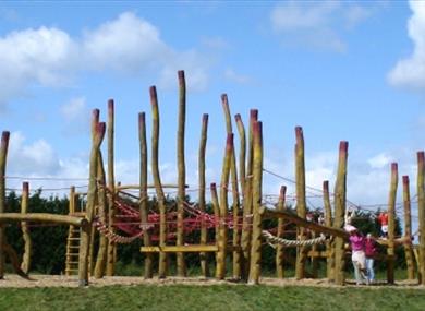 The play area has sensory elements, landscaped features such as mounds and tunnels, and some unusual features (like willow igloos and a totem pole) and aims to exercise the mind as well as the body. Children will discover old favourites - a zip-wire, swings and slides - as well as new ones as they bounce on trampolines or swing in hammocks, dig in the sandpit or venture into a willow maze.